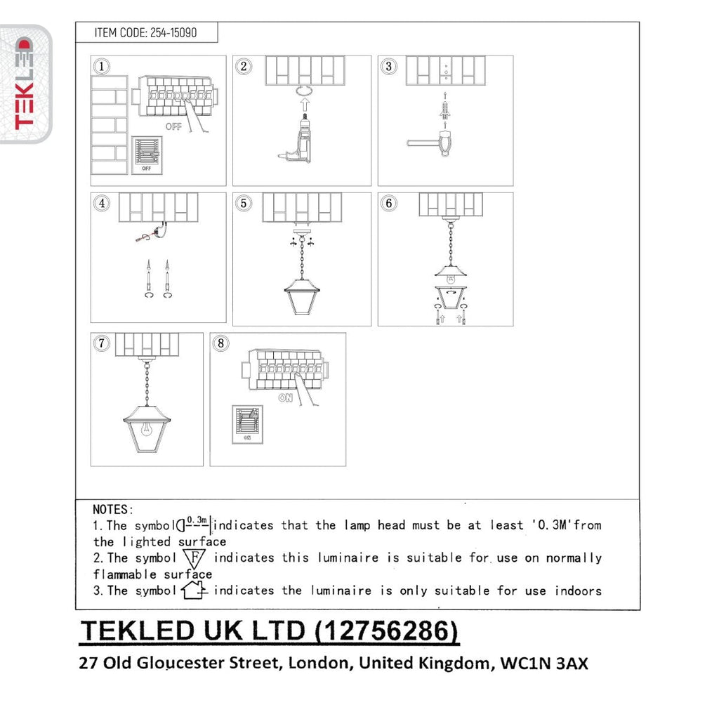 This stylish pendant ceiling light effortlessly combines a matte black finish with a clear glass enclosure. Its adjustable chain suspension allows for flexible positioning, and its classic lantern shape adds a touch of timeless elegance to any room.