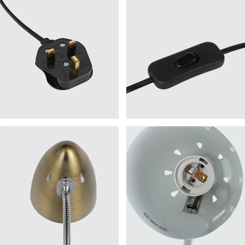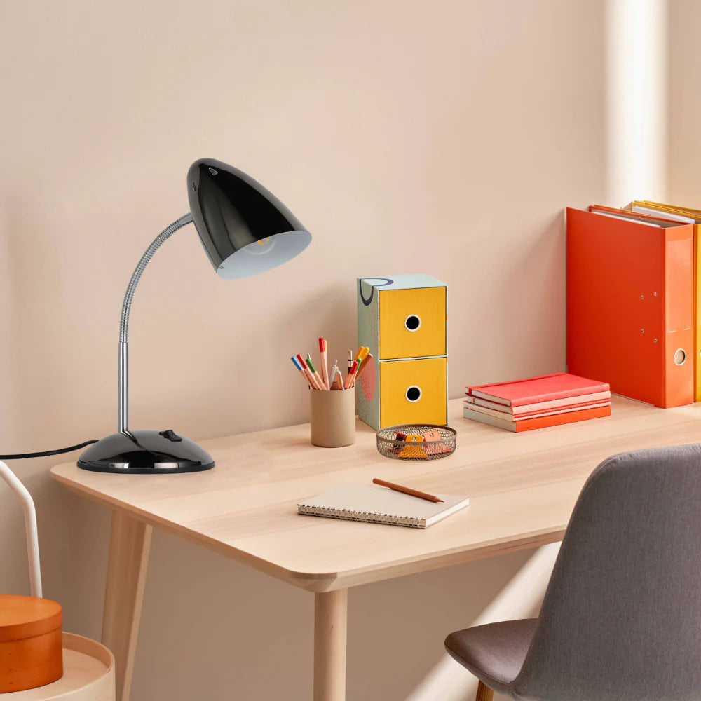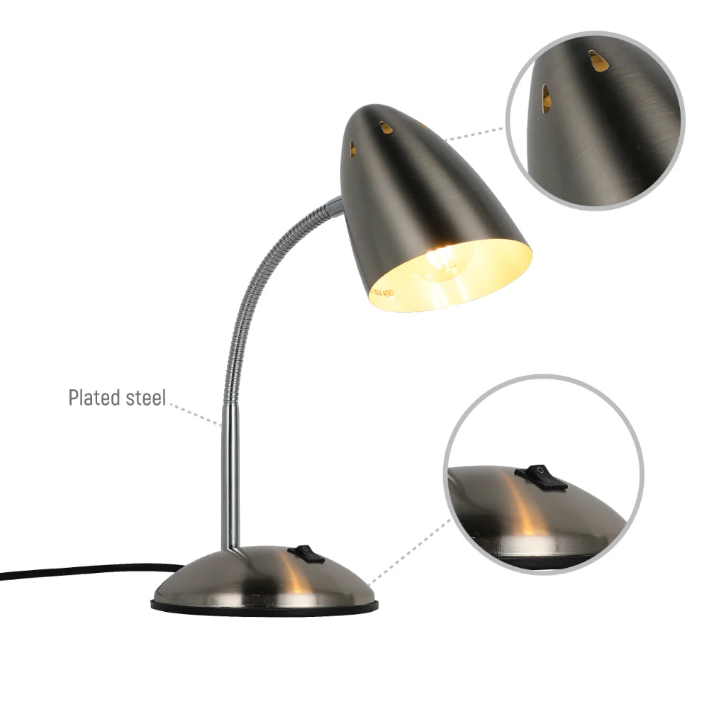 Brighten up your workspace with our stylish and practical flex neck desk lamp. Its adjustable gooseneck lets you direct light exactly where you need it. Available in antique copper, pearl black, and sand nickel, you’re sure to find the perfect match for your décor. It’s also really easy to assemble - simply attach the shade to the base and plug it in.