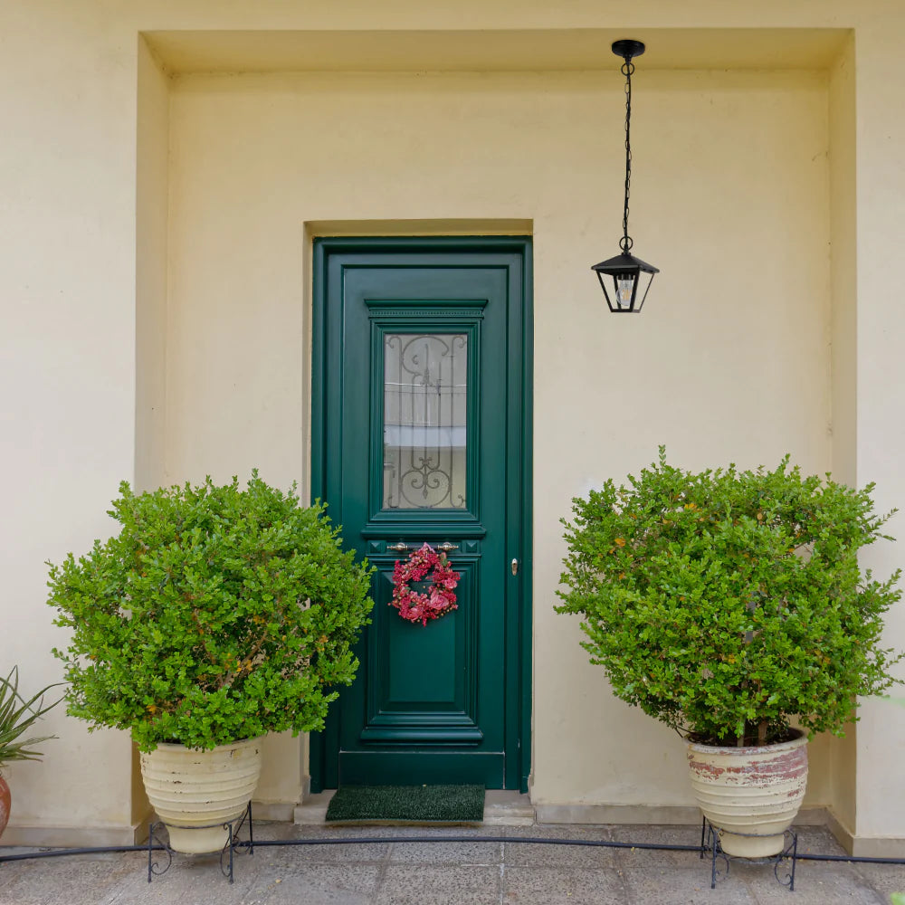 This stylish black pendant lantern light is perfect for adding a touch of elegance to your outdoor space. Its geometric design and clear glass panels create a warm and inviting ambience, while the IP44 rating ensures it can withstand the elements. Plus, you can adjust the drop length to suit your needs.