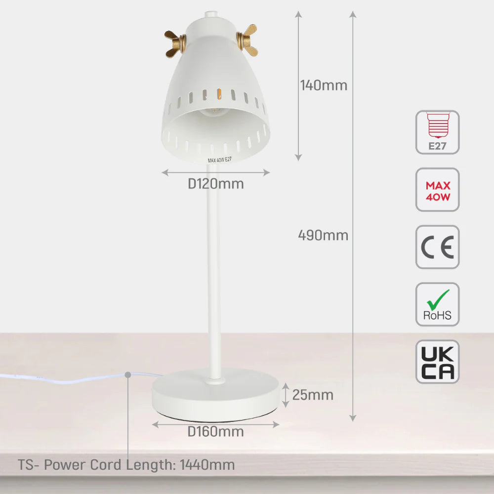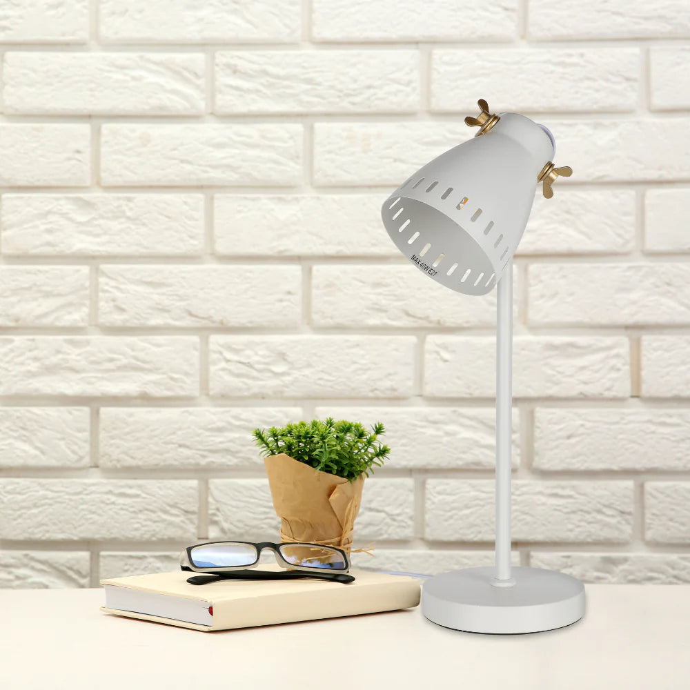 Brighten up your workspace with our stylish retro desk lamp. Its brass accents and sleek design add a touch of vintage charm to any home office or study. You can easily adjust the lamp's angle to direct light exactly where you need it. Plus, it’s compatible with a range of E27 bulbs, so you can customise the brightness and colour temperature to suit your preferences.