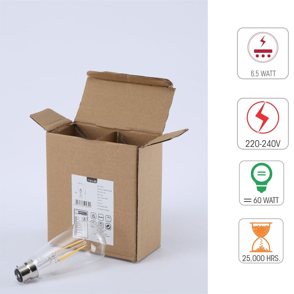 LED Dimmable Filament ST64 Edison Bulb B22 Bayonet Cap 6.5W Pack of 2