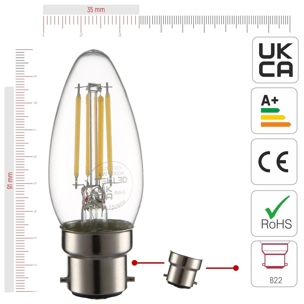 LED Filament C35 Candle Bulb B22 Bayonet Cap 4W