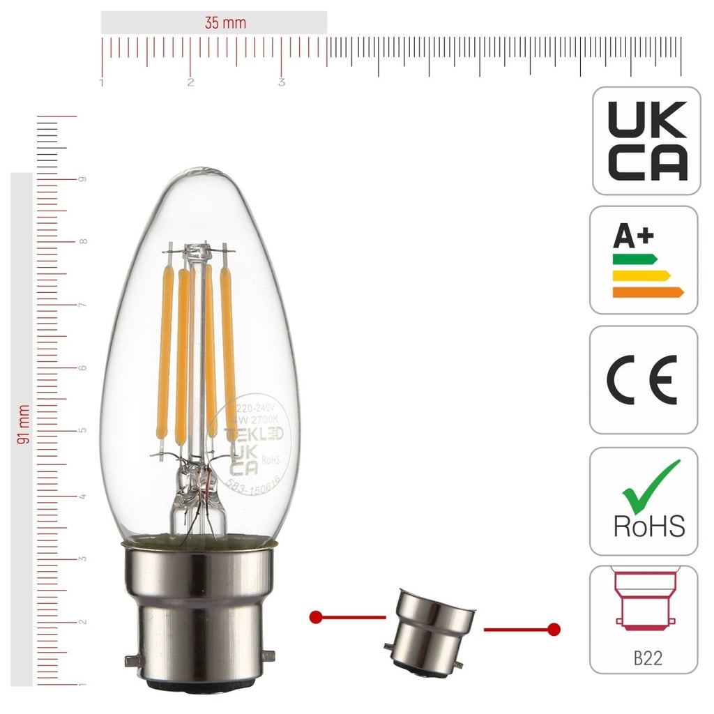 | Name | LED Filament C35 Candle Bulb B22 Bayonet Cap 4W Pack of 6 or 10 Warm White Cool White |