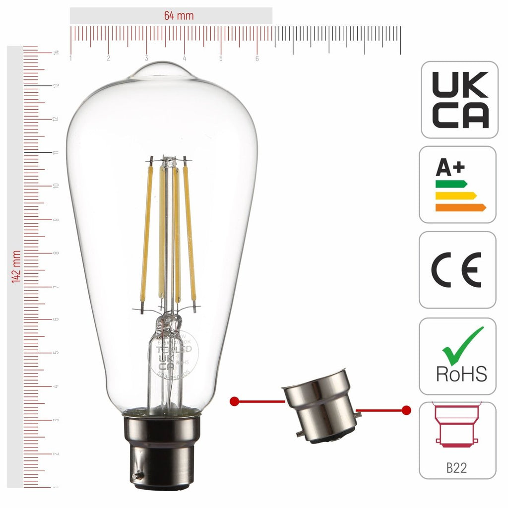 LED Filament ST64 Edison Bulb B22 Bayonet Cap Pack of 4