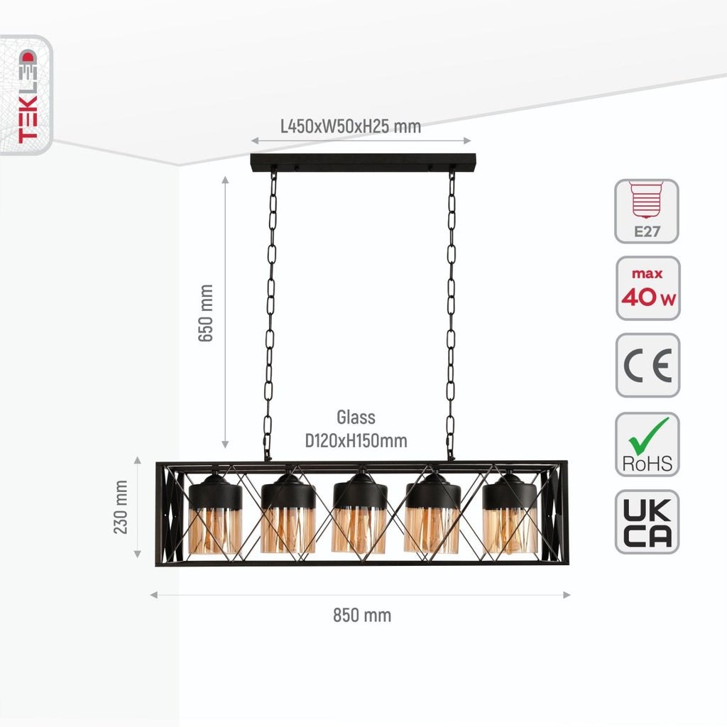 | Name | Black Caged Metal Amber Cylinder Glass Island Chandelier Ceiling Light with 5xE27 |