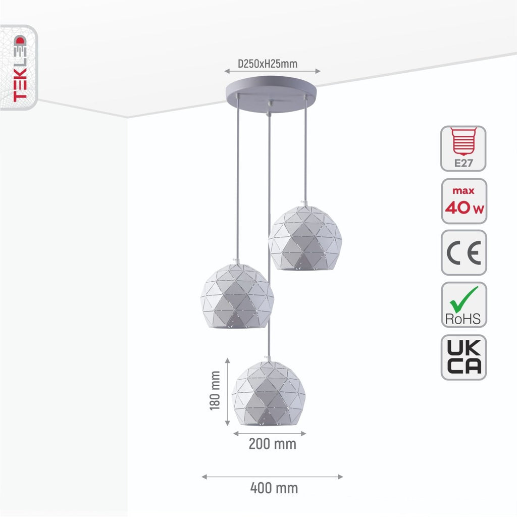 | Name | Triangle Laser Cut Metal Globe Pendant Ceiling Light with 3xE27 White or Black |