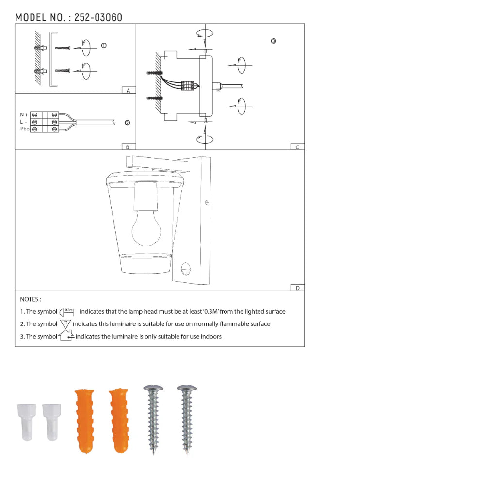 - Compatible bulbs: GLS, Golf Ball, Tubular