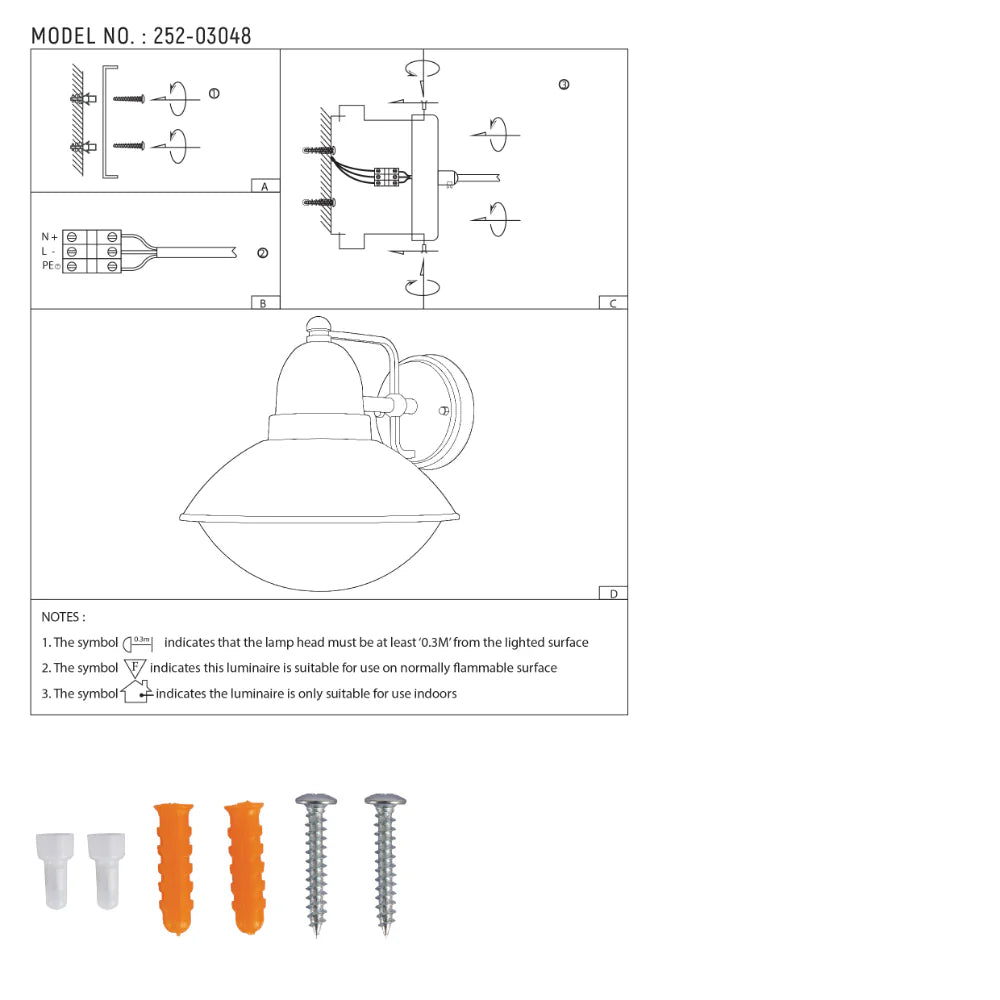 - Compatible bulbs: GLS, Golf Ball, Tubular