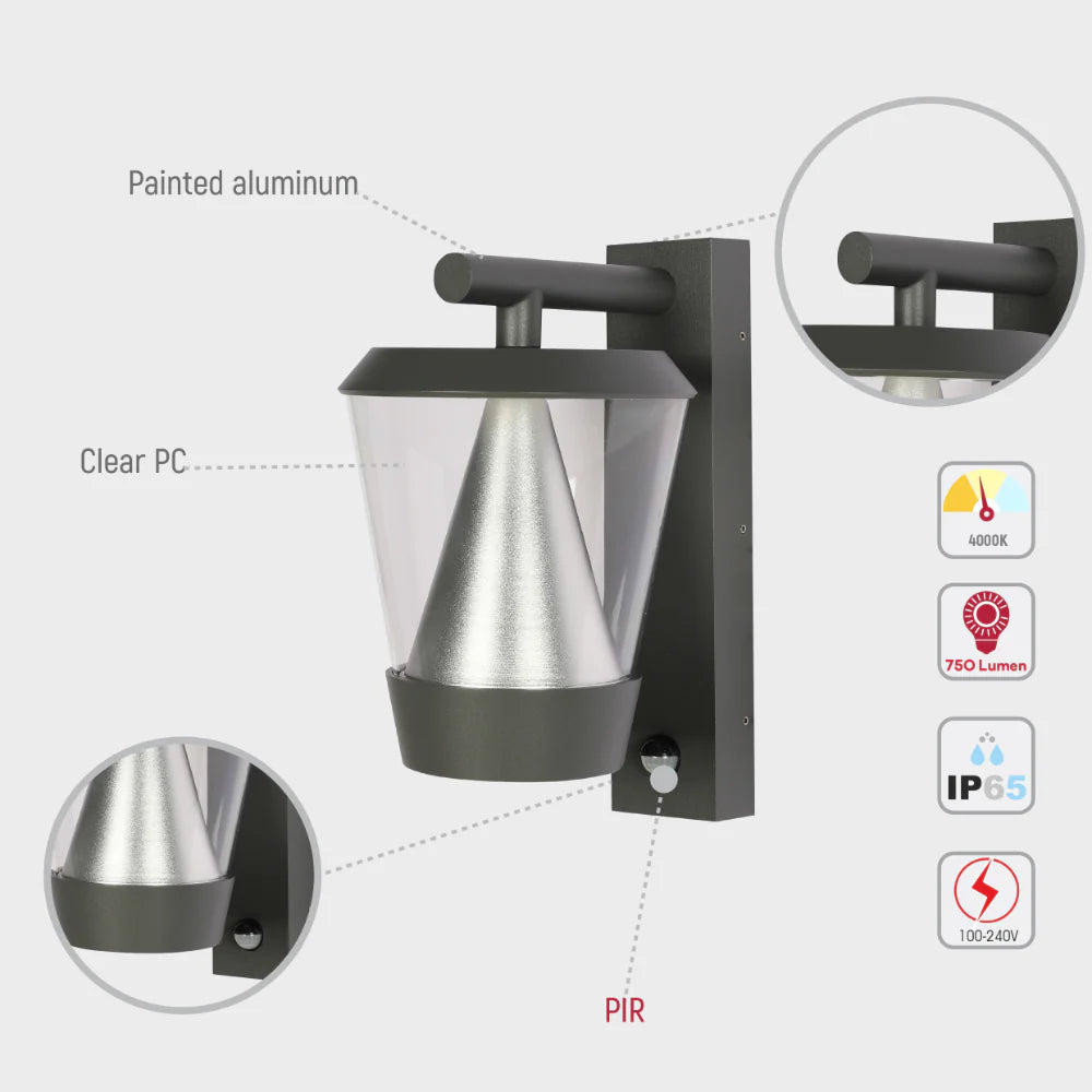 Tiany LED Outdoor Lantern Wall Light 13W 4000K